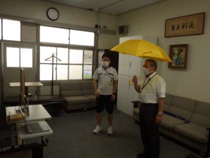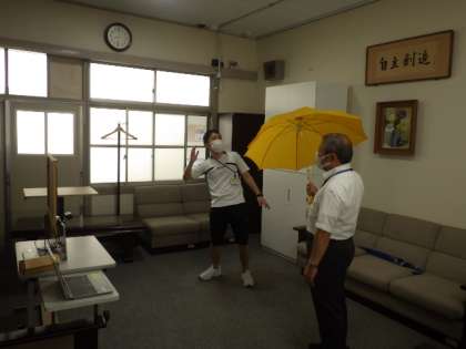 かさを持って歩く時の、持ち方、人とのすれ違い方。