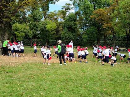 遊ぶうちに、大「だるまさんが転んだ」が始まり、さながら狩りをする狩人のようなバッタ穫りに挑戦する子どもたちに分かれて過ごすようになりました。