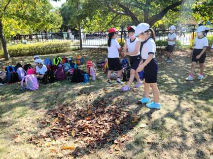 遊びの天才たちは落ち葉を集めていろいろな遊びを考えます。