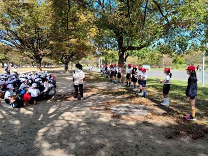 3・4年合同のグループに、4年生のリーダー(赤帽)を先頭に並び替えました。