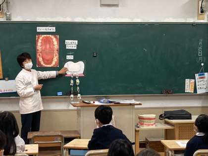 ゲストティーチャーに歯科校医の先生と歯科衛生士さんをお招きし、専門的に指導を受けました。
