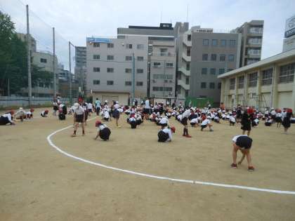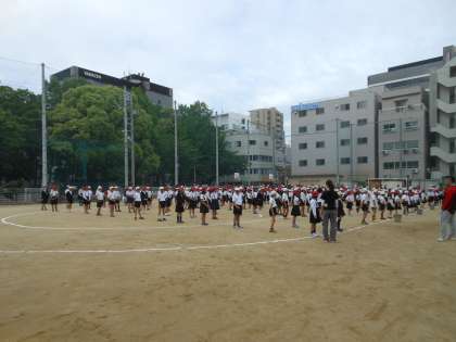 今日の児童集会は、全員運動場に集合し、