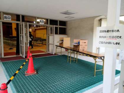 明日の午前中は、気温が今日よりも下がる予想です。会場の講堂内は、換気のため窓を開けておりますので、観覧中に寒さを感じられることが予想されます。