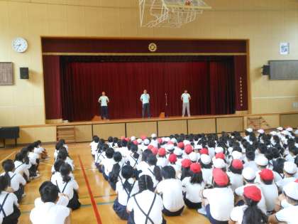 そこで、校長、二名の先生計三名で、児童たちに