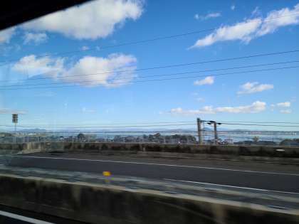 午後1時 バスの車窓から琵琶湖が見えるようになってきました。湖西へバスは進んでいます。