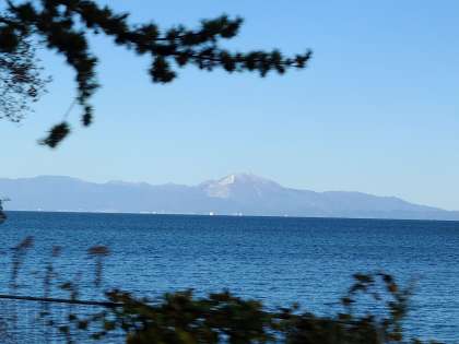 宿舎近く、白髭神社の鳥居と伊吹山が見えます。