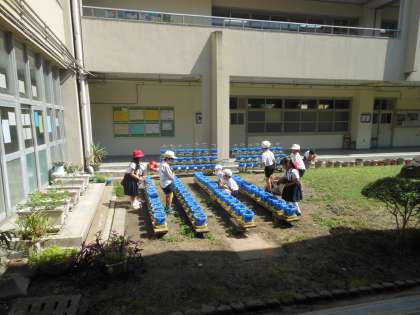 毎日、自分のあさがおのプランタ—(栽培用の容器)に