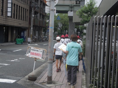 台風を想定した避難訓練から、集団下校しました。