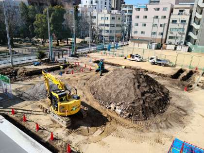 工事エリアを迂回するための仮設通路設営工事がさらに進んでいます。