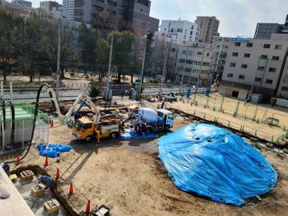 仮設通路を設営する工事は、通路の屋根を支える支柱の基礎づくりが進んでいます。