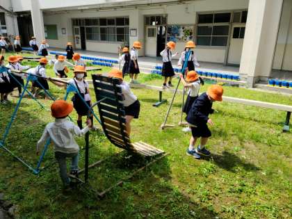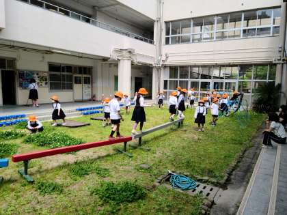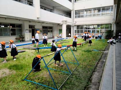 昼休み、1年生がみどりの広場で外遊びをしていました。