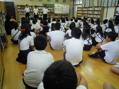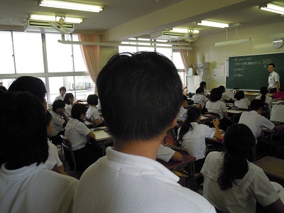 中学1・2年の授業を見せていただきました。ちょっと難しいなと思った子も多かったようですが、興味もわいていきたようです。その後、生徒会の3人に中学校生活についてお話をしていただきました。最後は、子どもたちが楽しみにしていたクラブ見学。興味のあるクラブを自由に見て回って、どのクラブに入ろうかと気持ちは少し中学校にいったかな。