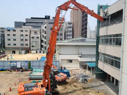 解体作業にはどうしても大きな音が伴います。教育活動に影響が最小限になるよう工事関係者と連携はしてまいりますが、音がすることは避けれませんので、ご承知いただくとともに、ご容赦ください。