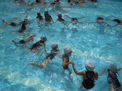 久しぶりの晴天の中、水泳学習をしました。手をつないでみんなで伏し浮きに挑戦もしました。