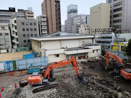 ピロティのあった校舎の建屋部分はすっかり解体され、姿はありません。今は土間や基礎の部分が掘り起こされ、解体されています。