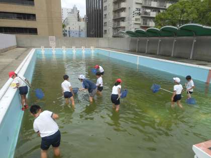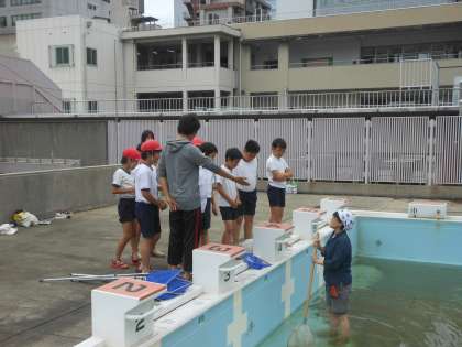 クラブ活動の時間、ひざくらいまでプールの