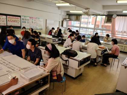 チームごとに授業を参観しあい、放課後に事後検討会しています。