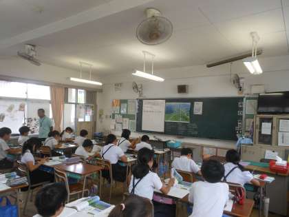 地域」の学習で、南魚沼市の絵や写真を使い、気づいた