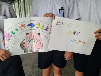 児童会によるあいさつ運動がはじまりました。今週の7月8日(金)まであいさつを呼びかけます。
