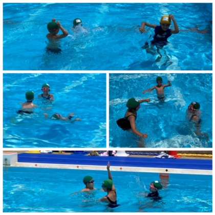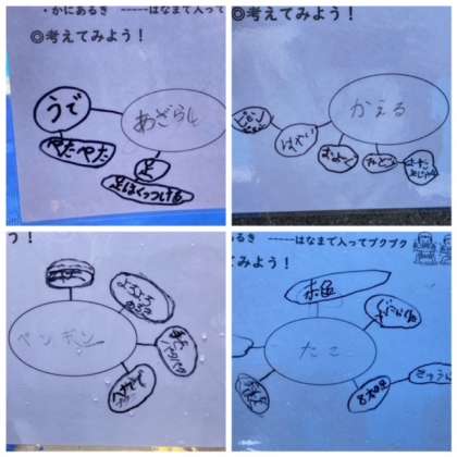 ペアのチーム同士で「まねっこ動物」を見せ合いました。