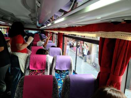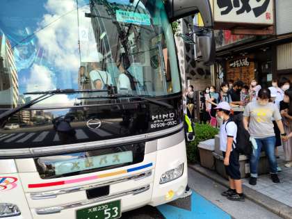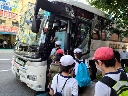 さあ、お家の人たちにしばしの別れを告げ、鉢伏高原への林間学習に出発です。