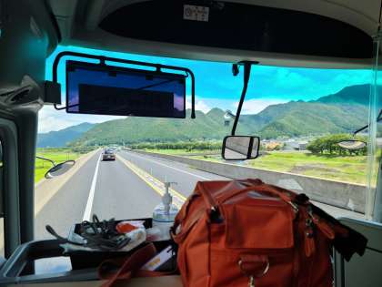 午前10時45分ごろ、バスは丹波地方の田園地帯を走っています。