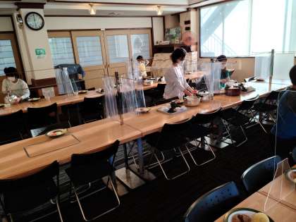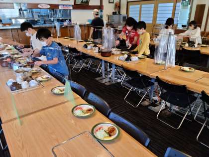 夕食の時間になりました。まずは各部屋の食事係が配膳の準備です。