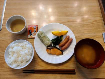 朝からバランスのよい食事をいただけるのは、宿舎「谷常」さんのおかげです。