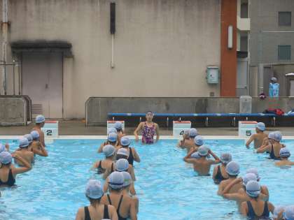 巽樹里さんに来校頂き、シンクロの模範演技、基本的な
