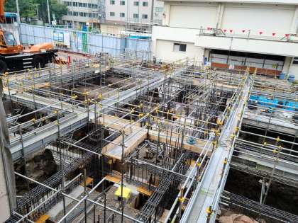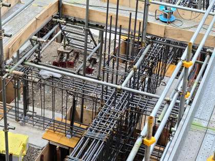 新校舎の基礎づくりでは、鉄筋が組まれ始めています。