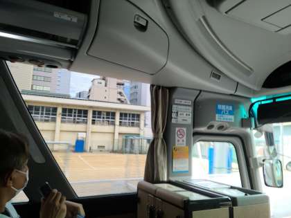 明治小学校の前もバスが通ってくれたので、学校の校舎にもいってきますと、告げる6年生でした。