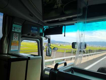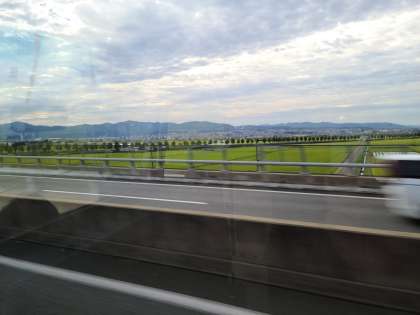 車窓から少しずつ黄金に色づきつつある田んぼが見えます。