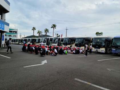 たくさんのバスが駐車しています。ほとんどが修学旅行のバスと思われます。