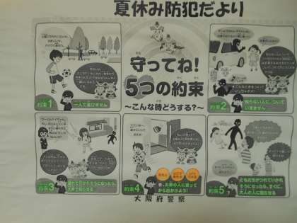 大阪府警から、「夏休み防犯だより〜守ってね5つの約束」