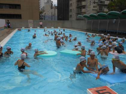 児童もいれば、水泳の練習に真剣に取り組む児童と