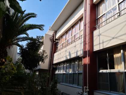 現在は南校舎(1年教室とプールのある校舎)の外壁・屋上補修が進められています。