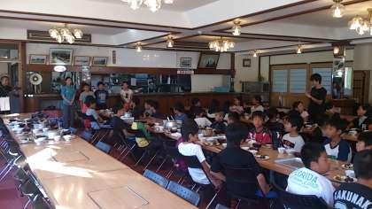 雲1つない快晴です。5年生もみんな元気に朝を迎え、朝の会を経て、朝食をいただきました。