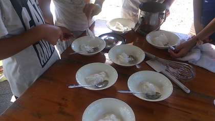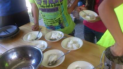 野外調理の後は、アイス作りをしました。暑い夏の午後に最高のデザートです。
