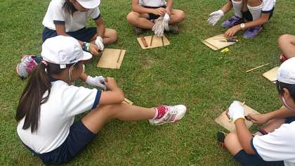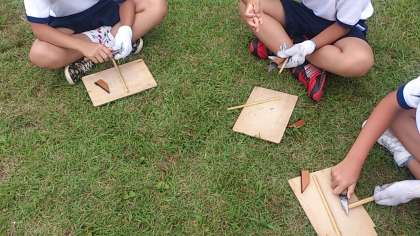 作ったお箸を使って、昼食をいただくのかどうかは定かではありませんが、小刀を使って作る様子は真剣そのものです。