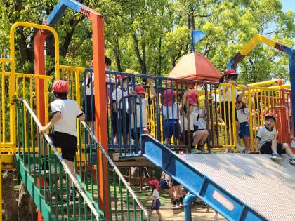 最後の遊具の遊び場所には給水所があるので、熱中症防止のために、水を飲むことを許可しました。