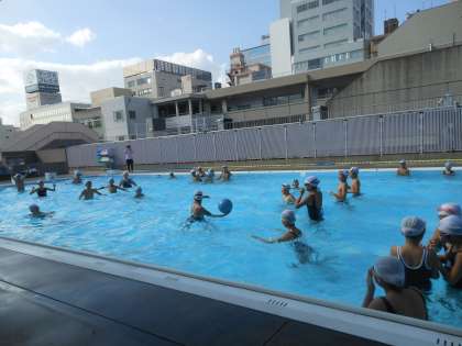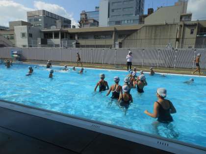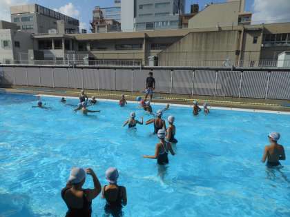 明治小学校の児童はしっかり泳ぎ、思い切り