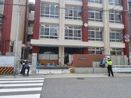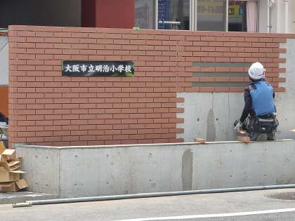 門柱にはタイルが貼られつつあり、学校の新しい顔のイメージが見え始めてきました。