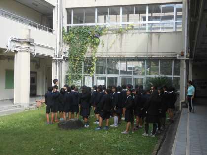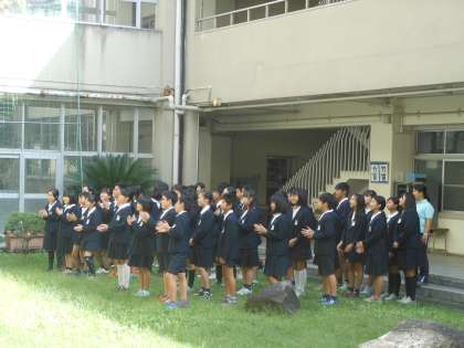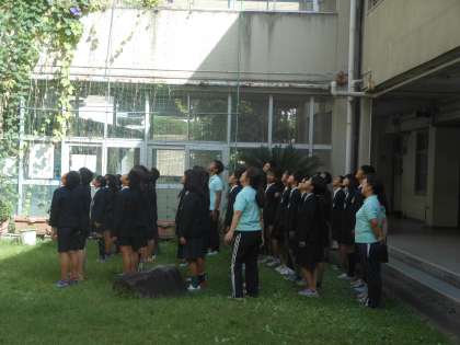 今日は、中庭で6年生の全体写真、委員会メンバー