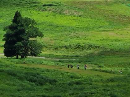 広々とした高原での距離感に戸惑いながらも、道なき道を歩き回っています。