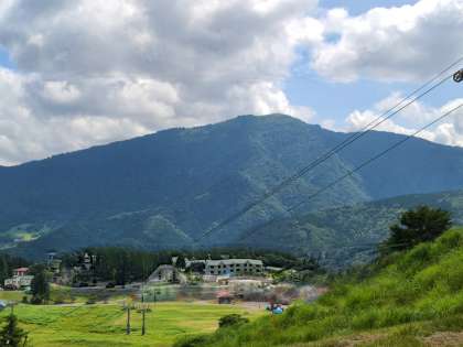冬場は雪に覆われていることが多い山ですが、今は緑の木々で夏山の様相です。