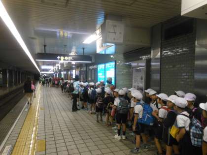 学校から本町駅まで歩き、四つ橋線の乗り、大国町駅で