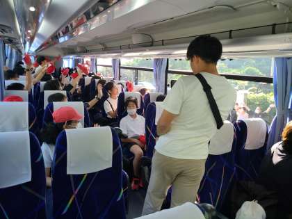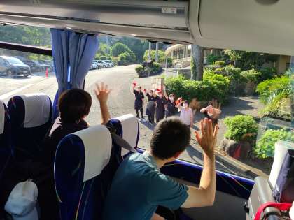 午前8:50 宿舎 扇芳閣の皆さんとお別れをしてバスは出発しました。