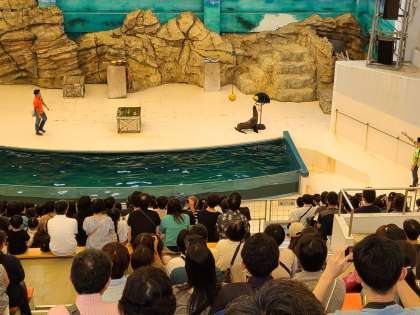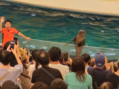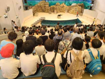 午前10時からは、アシカショーがありました。観覧しているグループもあります。