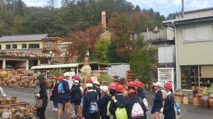 伊賀上野ドライブインでの休憩の後、最初の活動地である、信楽焼の窯元「宋陶苑」に到着しました。
