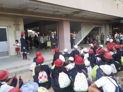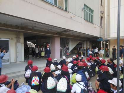 帰校時には、多くの保護者の皆さんに出迎えて